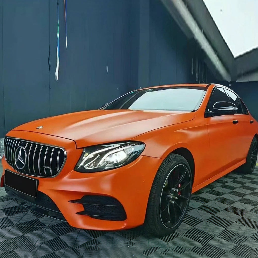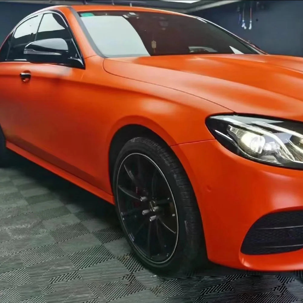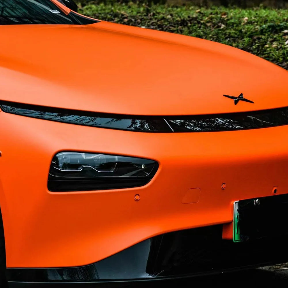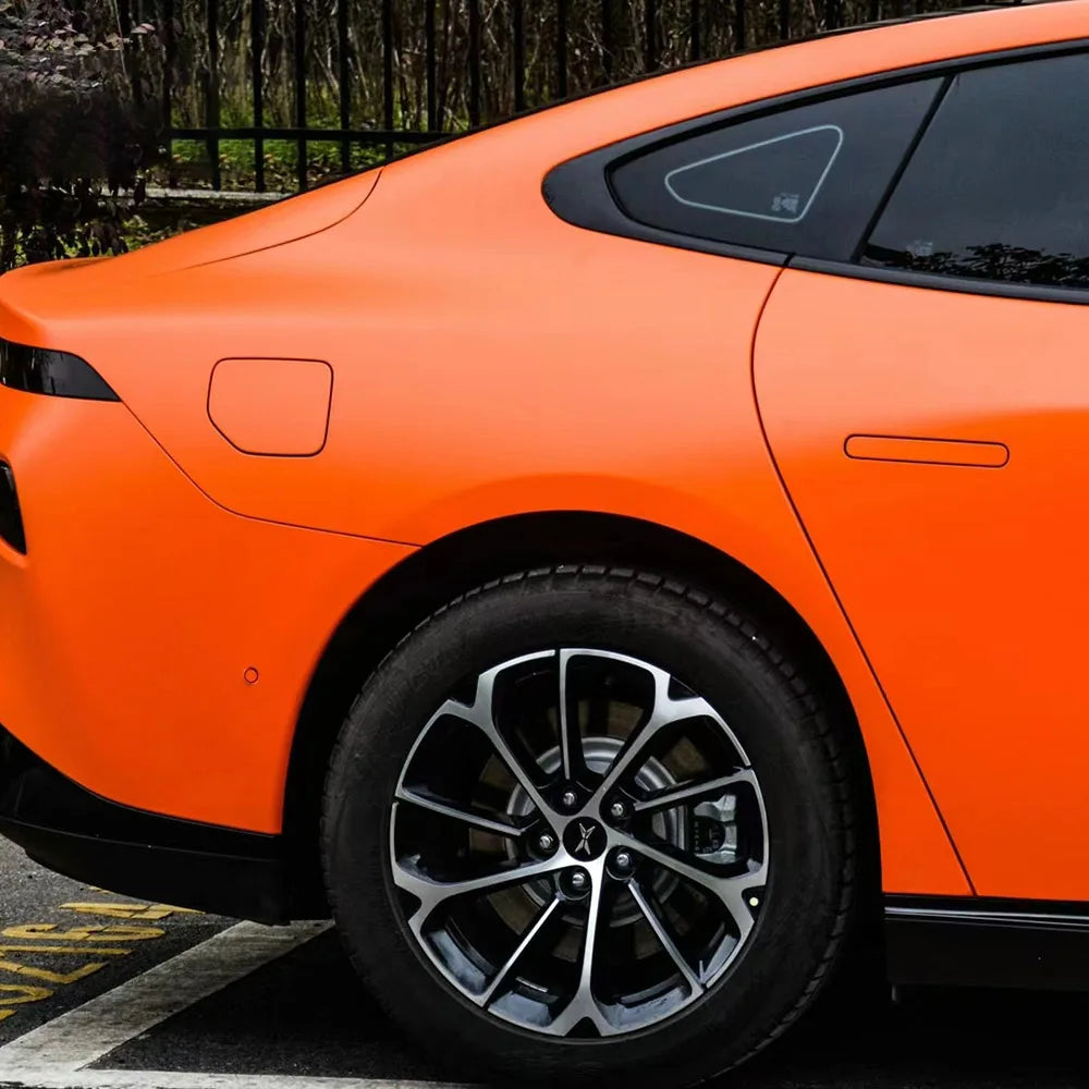 Vinilo mate cerámico en color naranja, con un acabado suave y elegante que resalta las líneas del coche. Perfecto para proyectos completos o detalles, fácil de aplicar y con un resultado profesional.