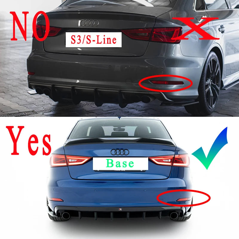 Mejora la parte trasera de tu Audi A3 8V Standard Sedan (2013-2016, Pre-Facelift) con este difusor trasero en acabado negro brillante. Fabricado en ABS de alta calidad, aporta un look más deportivo y elegante. ⚠️ No compatible con A3 S-Line ni S3. Instalación sencilla con ajuste perfecto al paragolpes original.